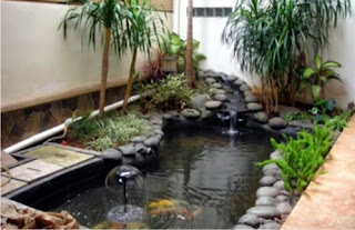 kolam ikan sebagai peredam kepenataan saat santai di rumah.